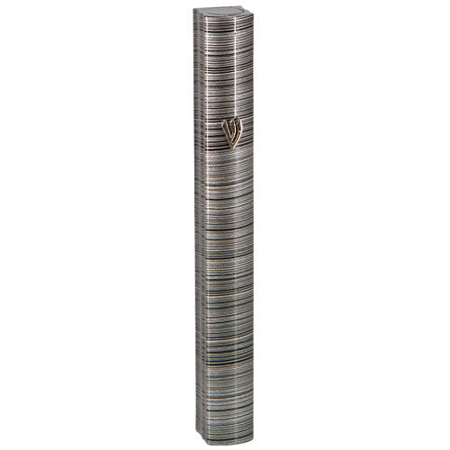 Aluminum Mezuzah 15Cm - 3D Metallic Gray & Black Striped Design